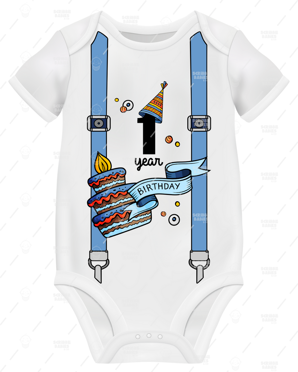 Elevate your little one's wardrobe with our 1 YEAR OLD SUSPENDERS COSTUME BOY ONESIE, exclusively available at Scribble Babies.