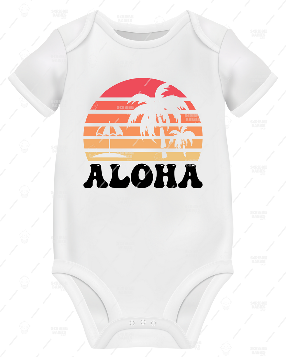 Elevate your little one's wardrobe with our ALOHA ONESIE, exclusively available at Scribble Babies.