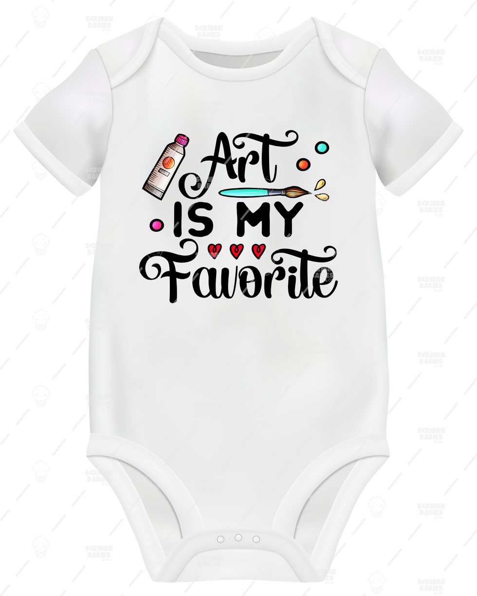 Elevate your little one's wardrobe with our ART IS MY FAVOURITE ONESIE, exclusively available at Scribble Babies.