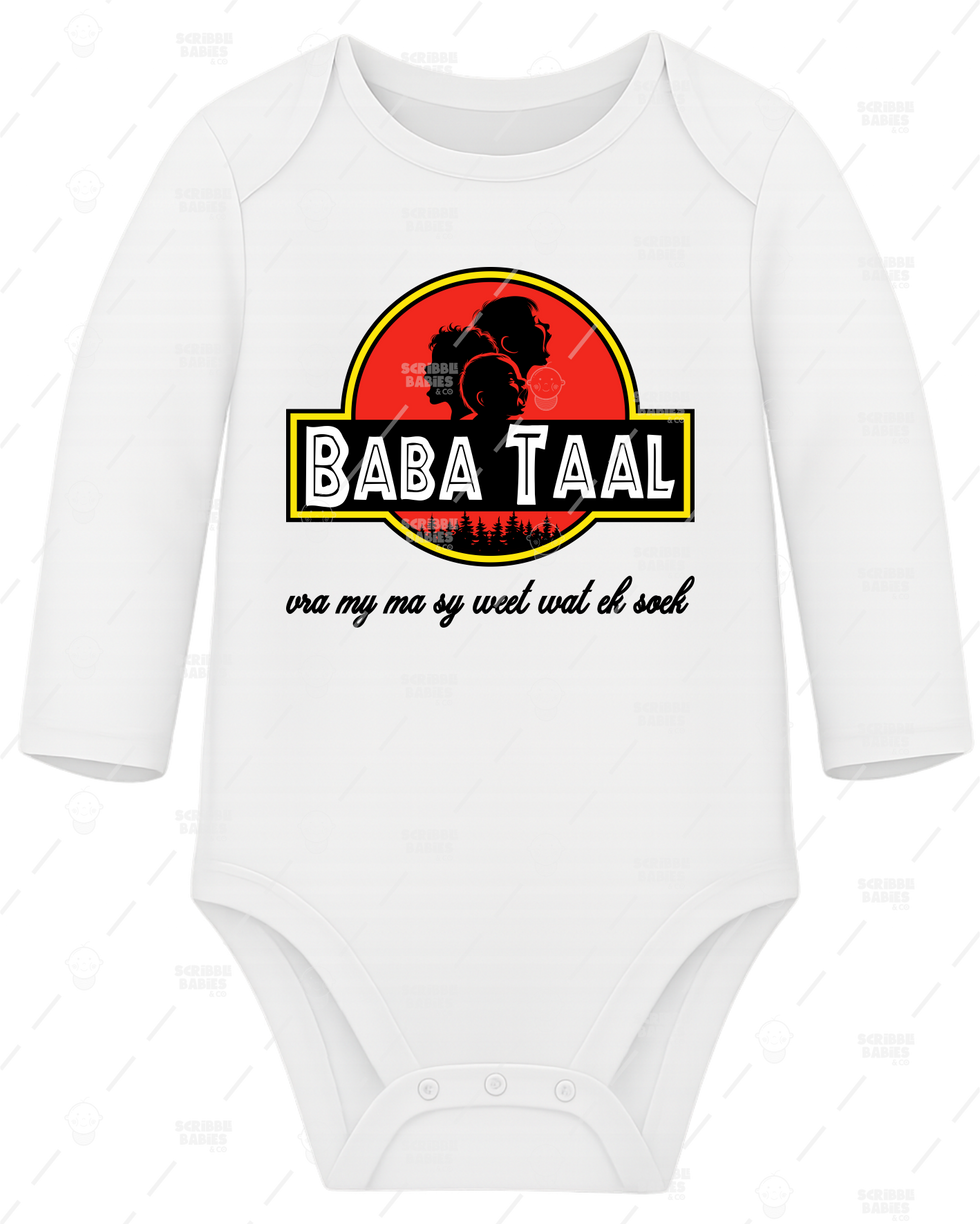 Elevate your little one's wardrobe with our JURASSIC PARK BABA TAAL ONESIE, exclusively available at Scribble Babies & Co.
