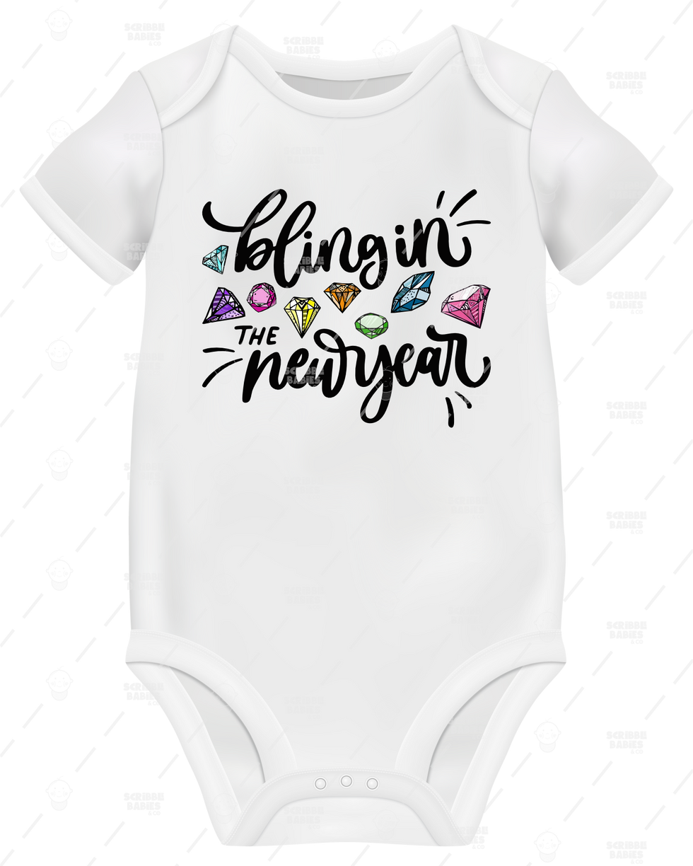Elevate your little one's wardrobe with our BLING IN THE NEW YEAR ONESIE, exclusively available at Scribble Babies.