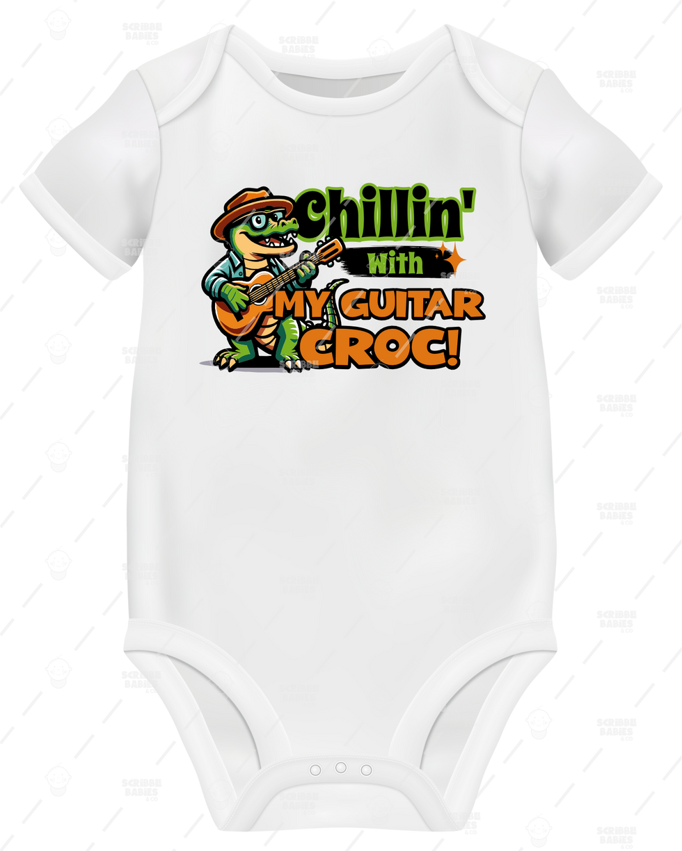 Elevate your little one's wardrobe with our CHILLIN' WITH MY GUITAR CROC ONESIE exclusively available at Scribble Babies.