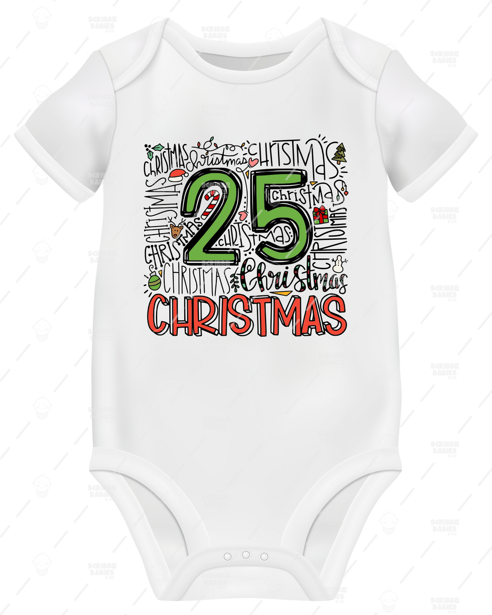 Elevate your little one's wardrobe with our CHRISTMAS 25 TYPOGRAPHY ONESIE, exclusively available at Scribble Babies.