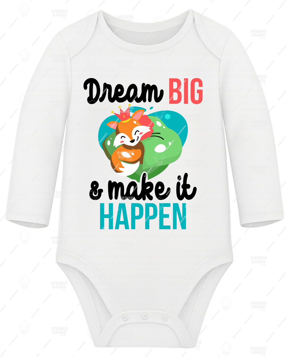 Elevate your little one's wardrobe with our DREAM BIG & MAKE IT HAPPEN ONESIE, exclusively available at Scribble Babies & Co.