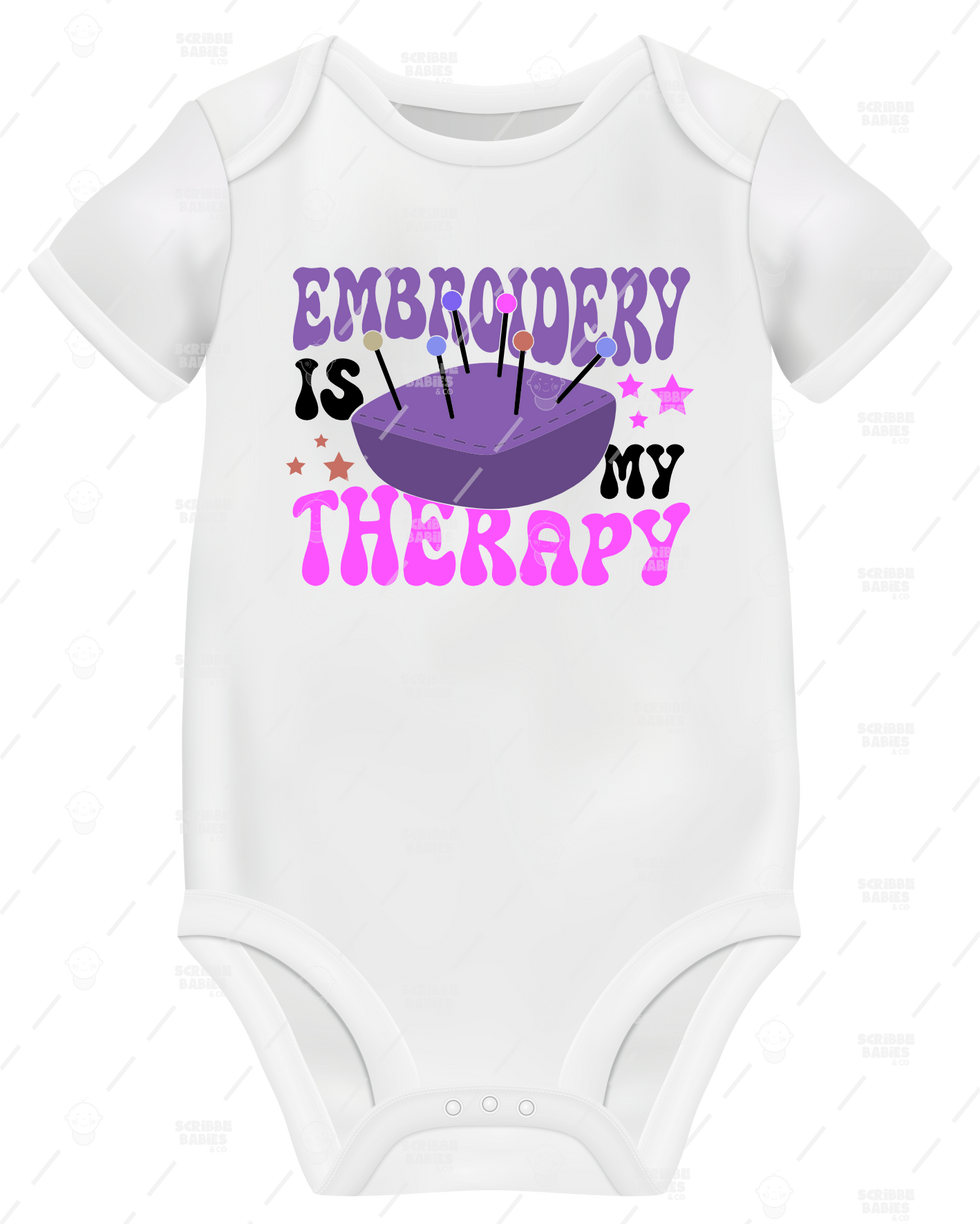 Elevate your little one's wardrobe with our EMBROIDERY IS MY THERAPY ONESIE, exclusively available at Scribble Babies.