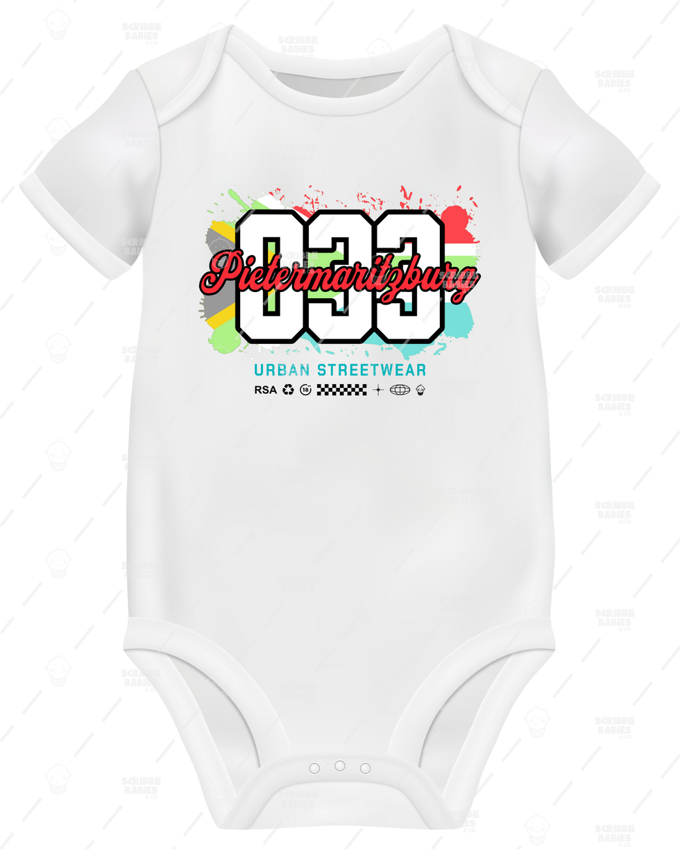 Elevate your little one's wardrobe with our URBAN STREETWEAR PIETERMARITZBURG ONESIE, exclusively available at Scribble Babies.