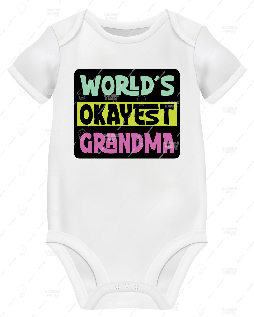 Elevate your little one's wardrobe with our WORLD'S OKAYEST GRANDMA ONESIE, exclusively available at Scribble Babies.